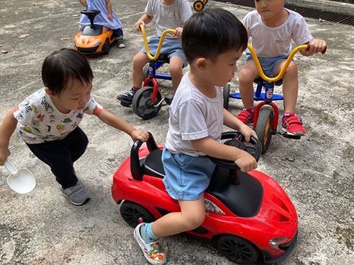 登園、自由遊び
